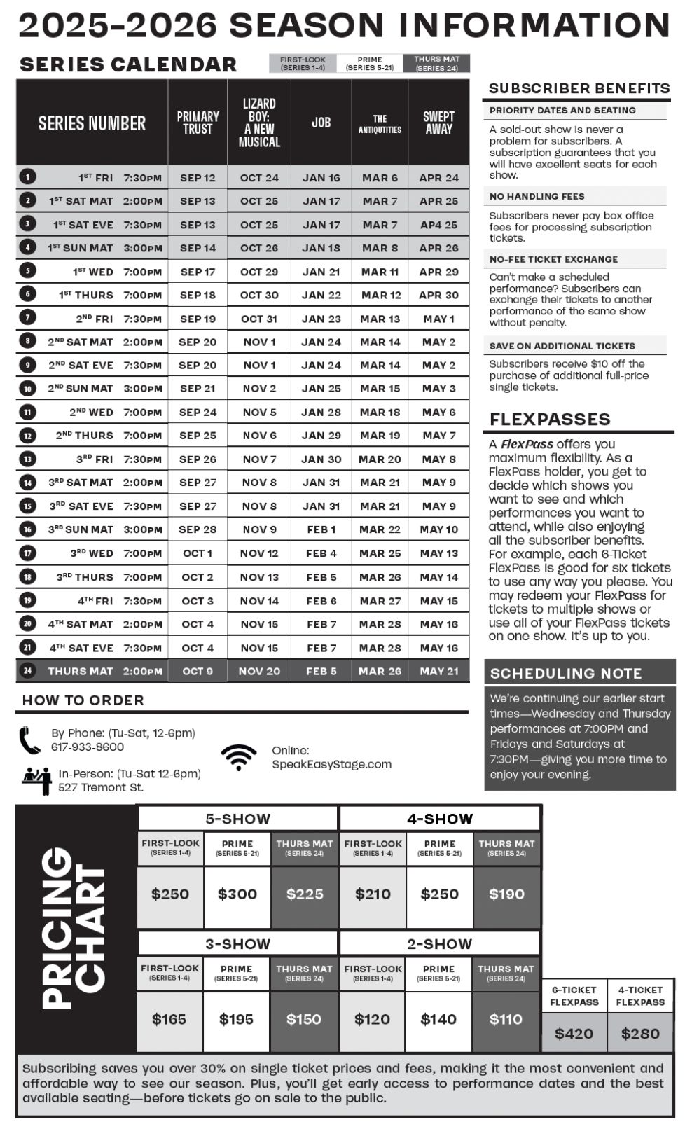 Please find below the 2025-26 Season Calendar, as well as more info about subscribing. To view larger, right-click the calendar image, and select “Open in New Tab”.